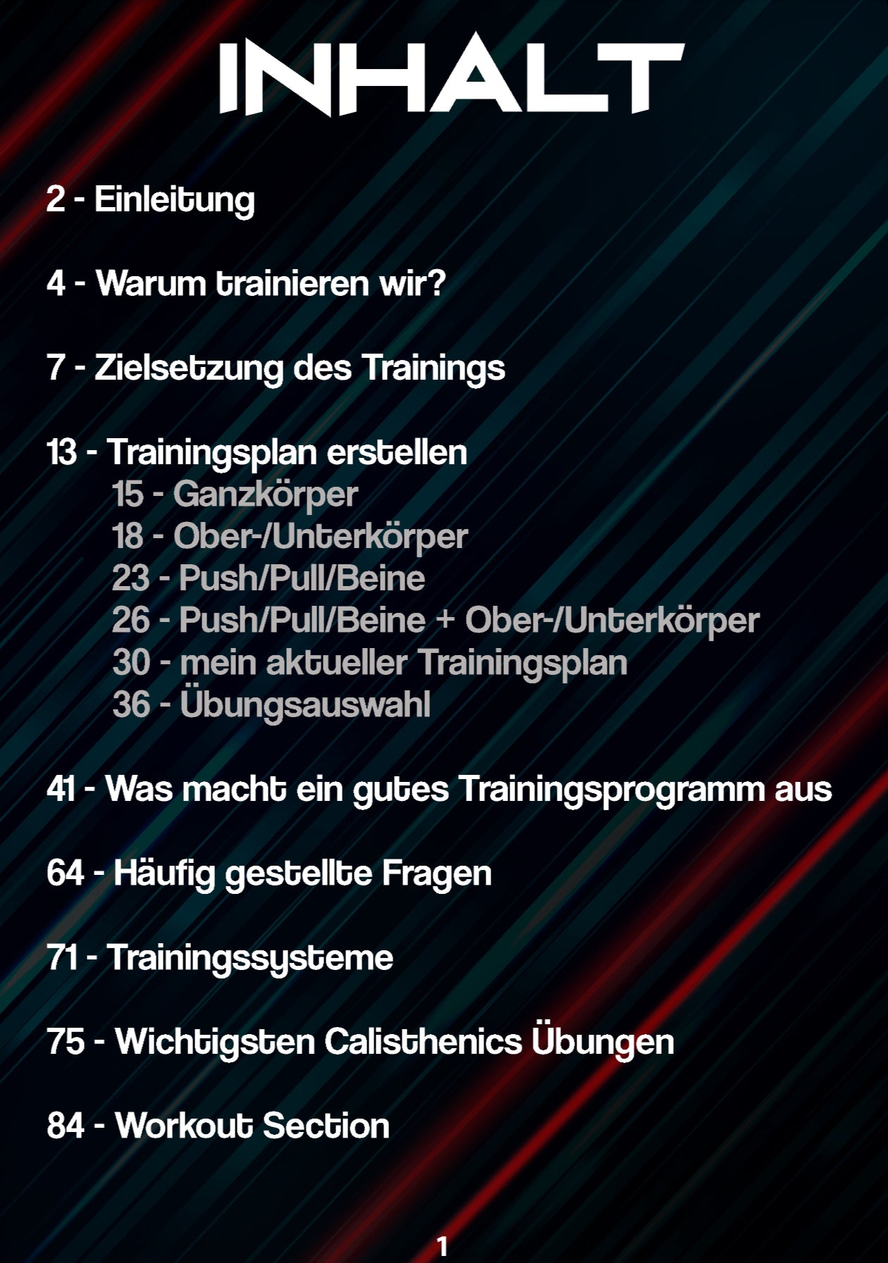 Auf über 140 Seiten findest du mehr als 40 Workouts, detaillierte Erklärungen und die Prinzipien, mit denen du dein Training individuell Gestalten kannst. Egal ob du ein kompletter Trainingsanfänger bist oder auf das nächste Level kommen möchtest, dieser Guide hilft dir, deine Ziele zu erreichen. Alle wichtigen Informationen über effektives Training sind hier zusammengefasst.